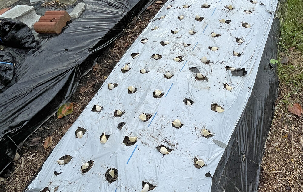 来週から、気温が下がる予報が出たので、遅らせていた「ニンニク(ホワイト6片)」を植えた。