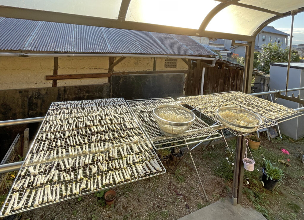「菌ちゃん農法」は畝の管理が大切です。収穫した後を、そのままにしておくと畝の中の土壌菌(糸状菌)の活動が弱くなってきます。空いた穴は通路の「有機物」で埋めて下さい。