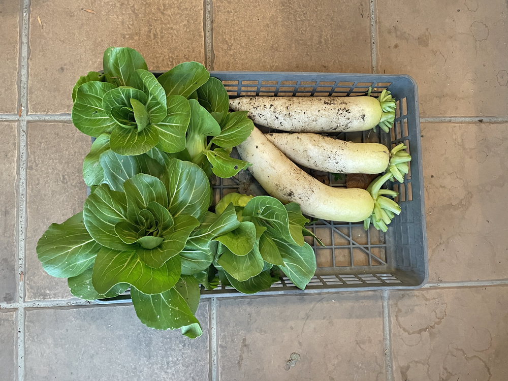 連日、「ダイコン」「チンゲン菜」の収穫が進んでいます。