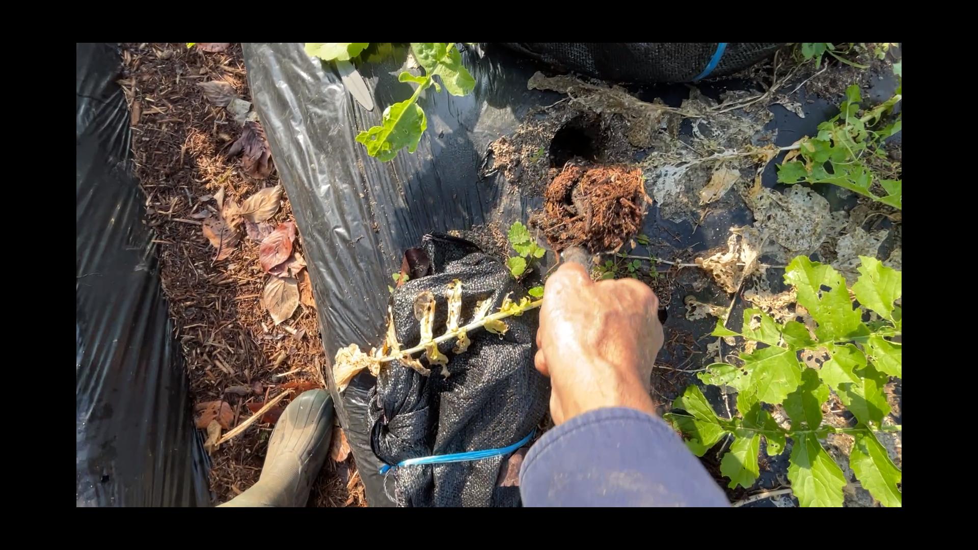「菌ちゃん農法」は畝の管理が大切です。収穫した後を、そのままにしておくと畝の中の土壌菌(糸状菌)の活動が弱くなってきます。空いた穴は通路の「有機物」で埋めて下さい。