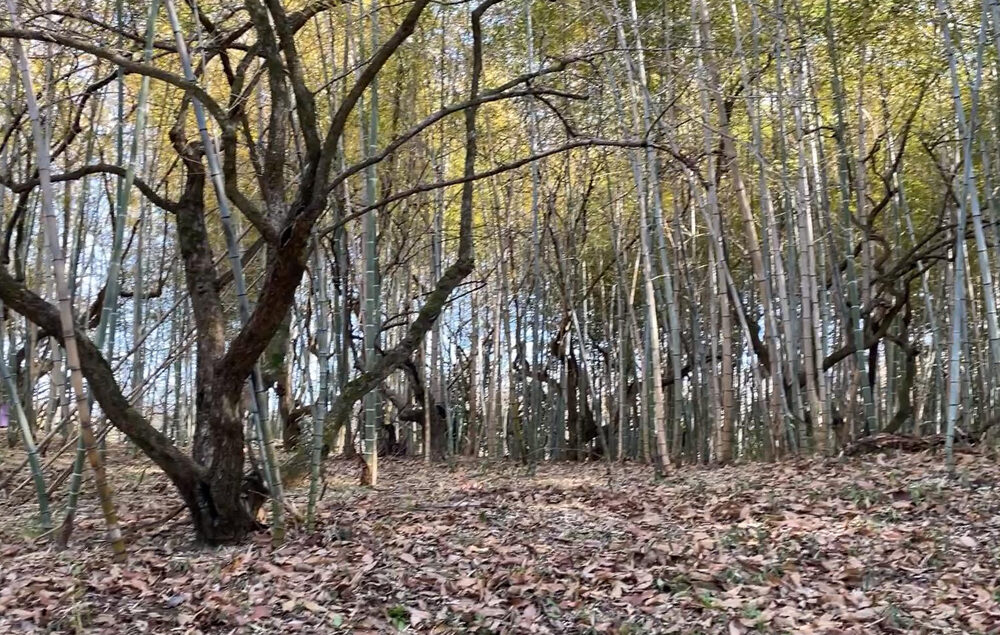 畑の近くの竹藪(許可を貰い)に入り「枯れ枝」を拾いました。