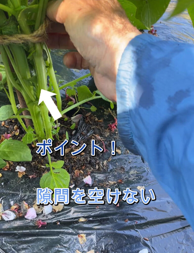 4 ポイントは・・支柱と茎の「隙間」なく縛る。