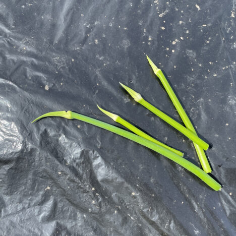 昨日、極早生玉ねぎの「トウ立ち」が出た(涙)。。玉ねぎの葉の色が…