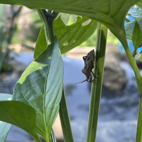 今年も、ついに畑の野菜(ピーマン)にカメムシが現れた。 茶色のカ…