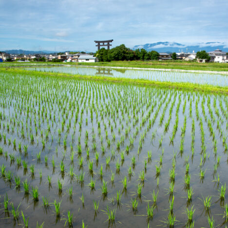 三輪神社の大鳥居が見える・・田んぼに行って来ました。 梅雨…
