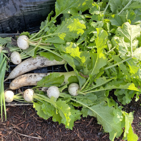 今朝は、「葉付ダイコン」と「葉付小カブ」と「青ネギ」を「…