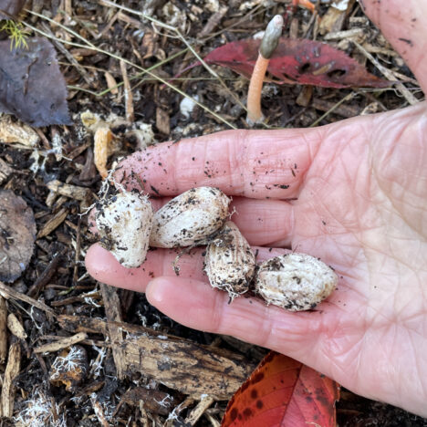 昨日、アスパラの畝の雑草を抜いていたら、丸い卵のようなものを…