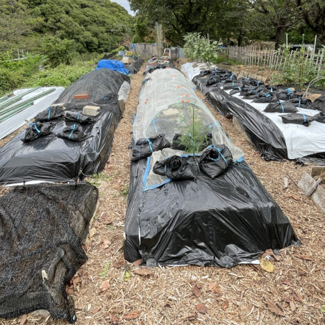 畑の通路には「有機物(木チップ・籾殻など)」を敷いています。…