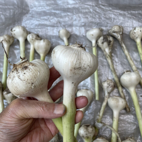 6月に入り、葉も黄色くなって来たので、ニンニクを収穫しました…