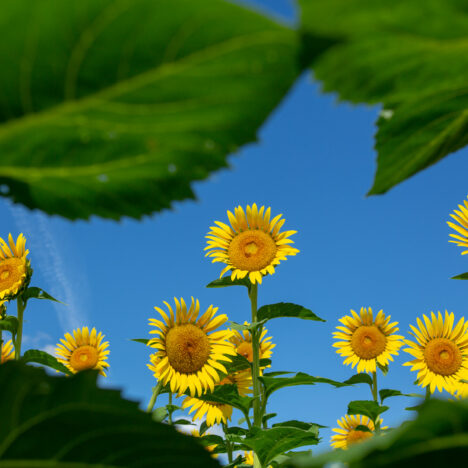 「山の辺の道」の萱生にある「向日葵(ひまわり)が見頃になって…