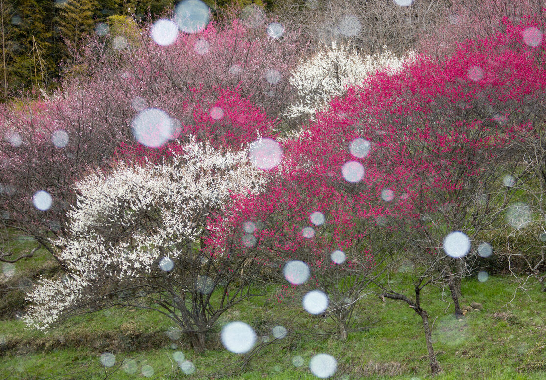 「檜原神社」周辺は、春には桜の花、梅の花、菜の花、桃の花などが咲き、三輪山や二上山と一緒に撮影できる、カメラマンに人気のスポットである。