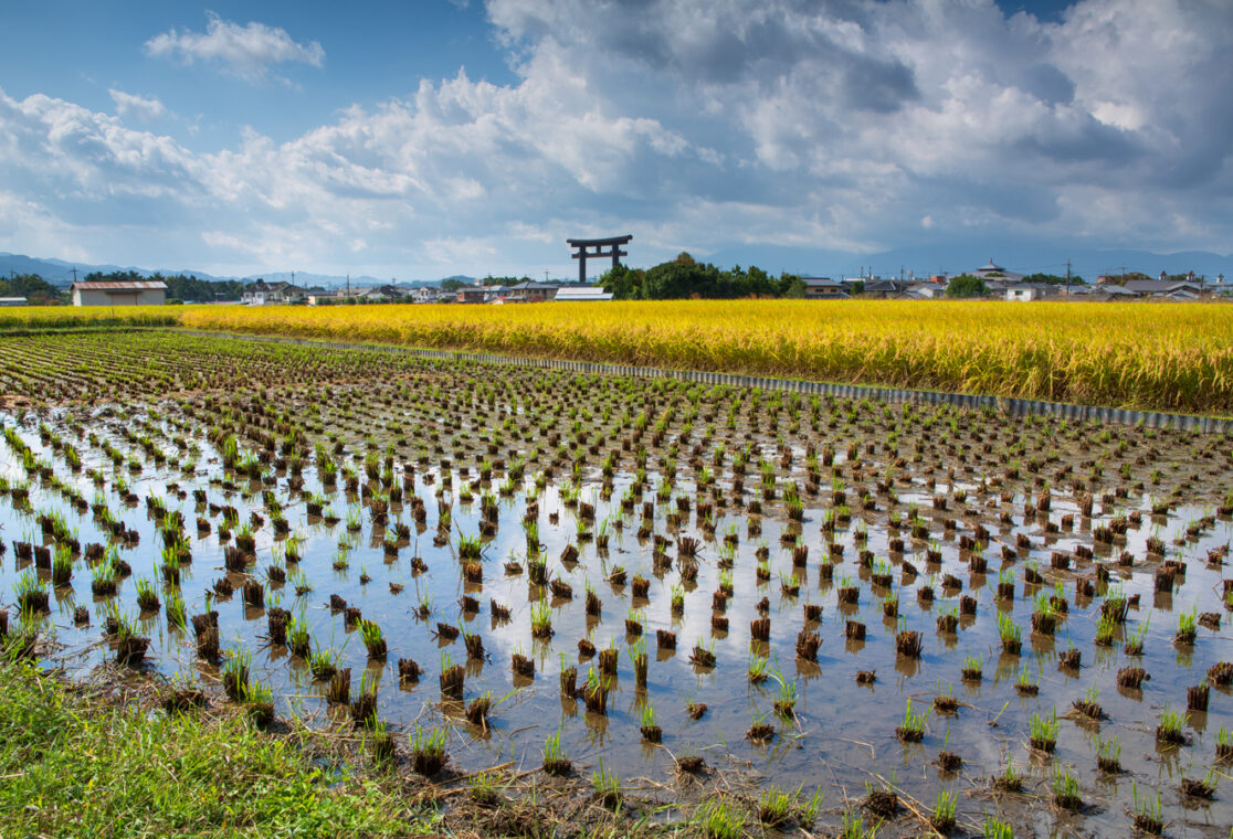 大神神社(おおみわじんじゃ)は日本最古の神社と言われている。ご神体は三輪山そのもので、本殿はなく、拝殿から三つ鳥居を通して山に向かって拝みます。三輪山は国を開いた大物主大神(大国様)が御霊を留めたという霊山。古くから一木一草にいたるまで斧で伐採するのを許されていない。