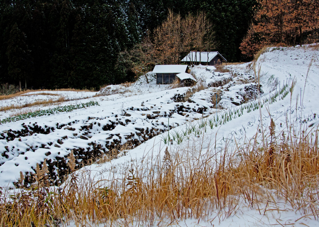 大和の棚田の雪景色が年々見られなくなって来た。昔から引き継がれてきた棚田の後継者問題で・・棚田が消えて行くことが大きいが、地球の温暖化により大和に降る雪が少なくなって来たことも大きい。