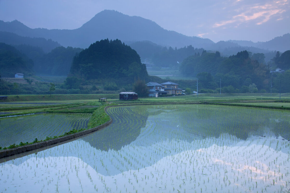 水田に映る景色は・・上下左右対称のシンメトリーの景色になることが多く、その不思議な景色に・・心が引き込まれる。