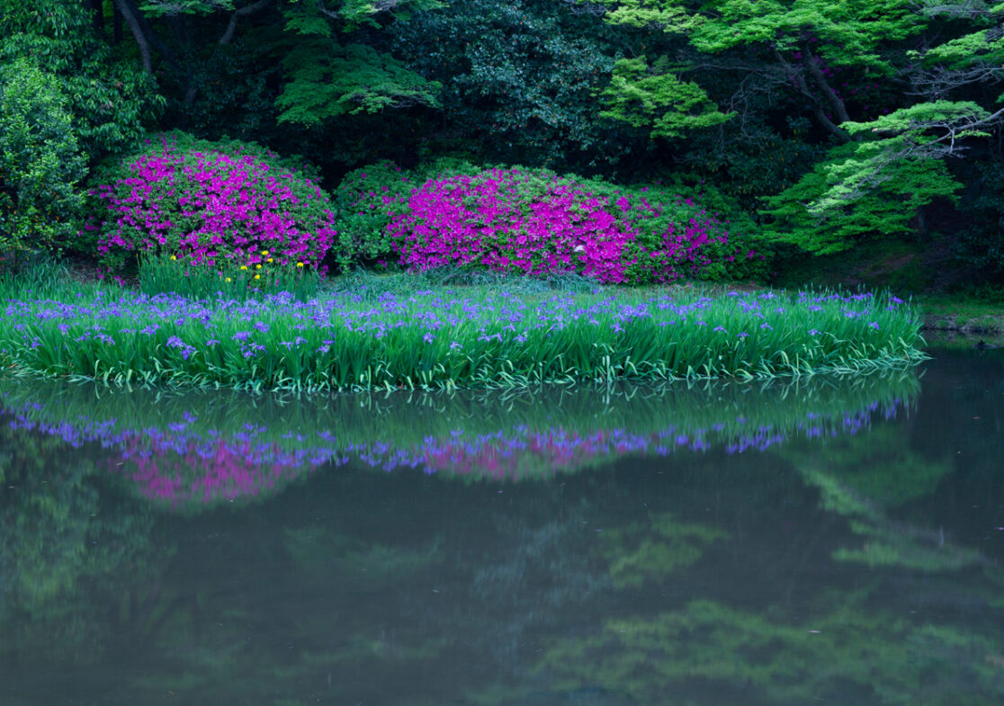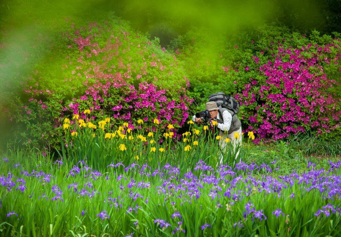 花の季節は参拝者が多く撮影が難しいので、早朝の時間にゆっくりと撮影したほうが良い。早朝は花の色も鮮やかで奇麗である。